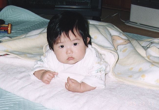 寝起きの『まにゃ』。パパのお気に入りの写真。(50K)