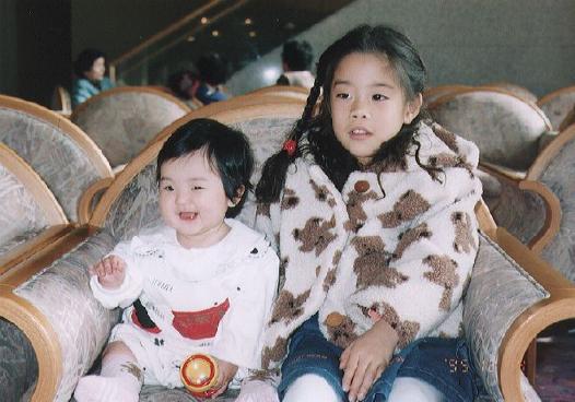 いとこのシーちゃん(右)と『まにゃ』。(38K)